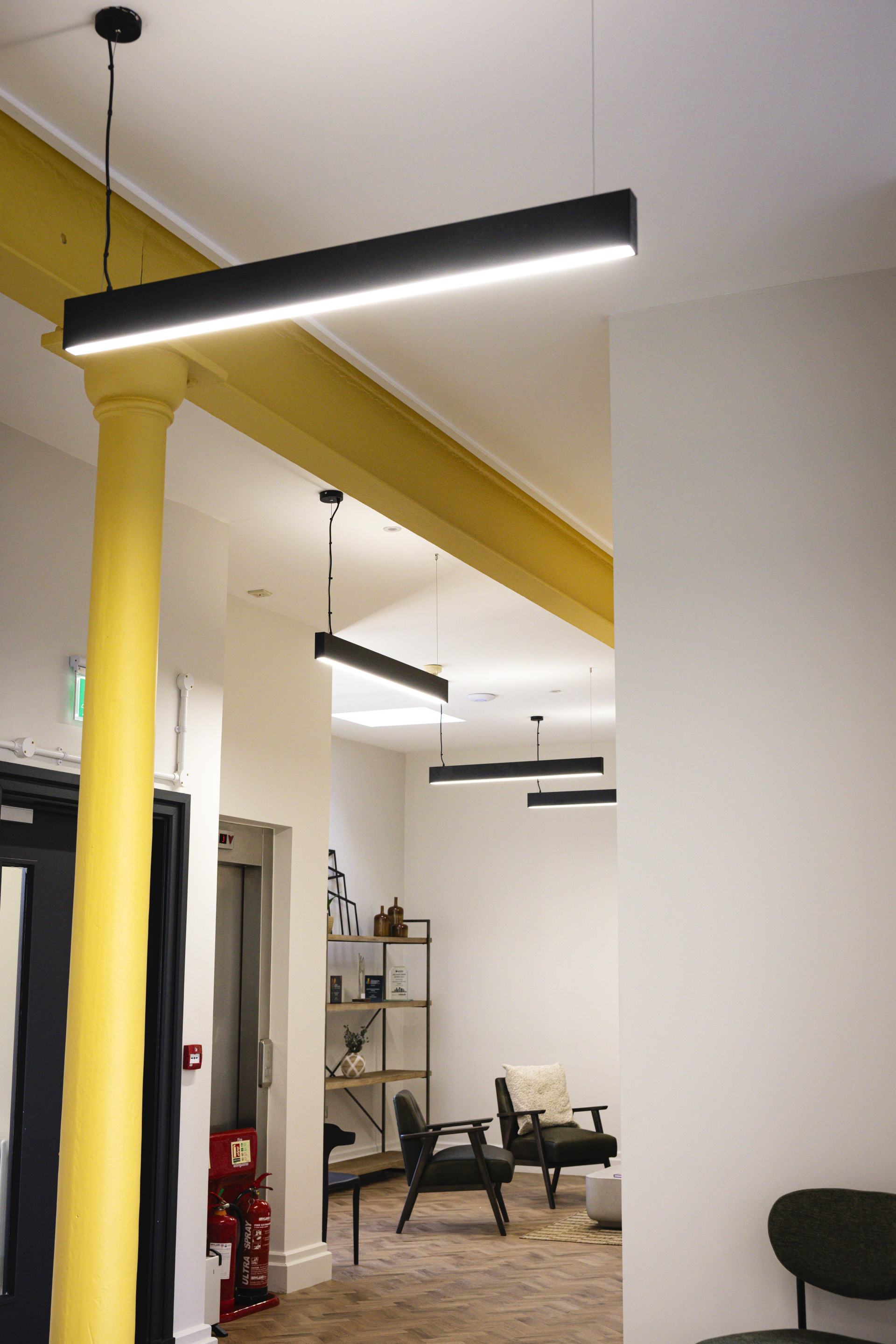 Alongside the need for their own Office space on the third floor the clients longer term plan for the lower floors is to create serviced office units which needed to be accommodated within the new lighting design. The aim was to modernise the building’s electrical infrastructure while preserving its features, ensuring compliance with building regulations and enhancing energy efficiency.